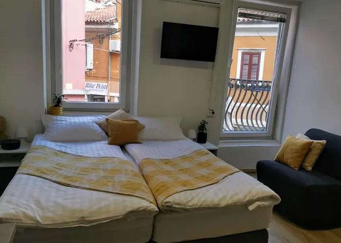 Plaza Zusterna Public Beach is nearly 10 minutes away by car, while Praetorian Palace is within a short walking distance of the apartment. Aquapark Zusterna is located approximately 10 minutes by car from the 22 m^2 property and 130 km from Brnik airport.